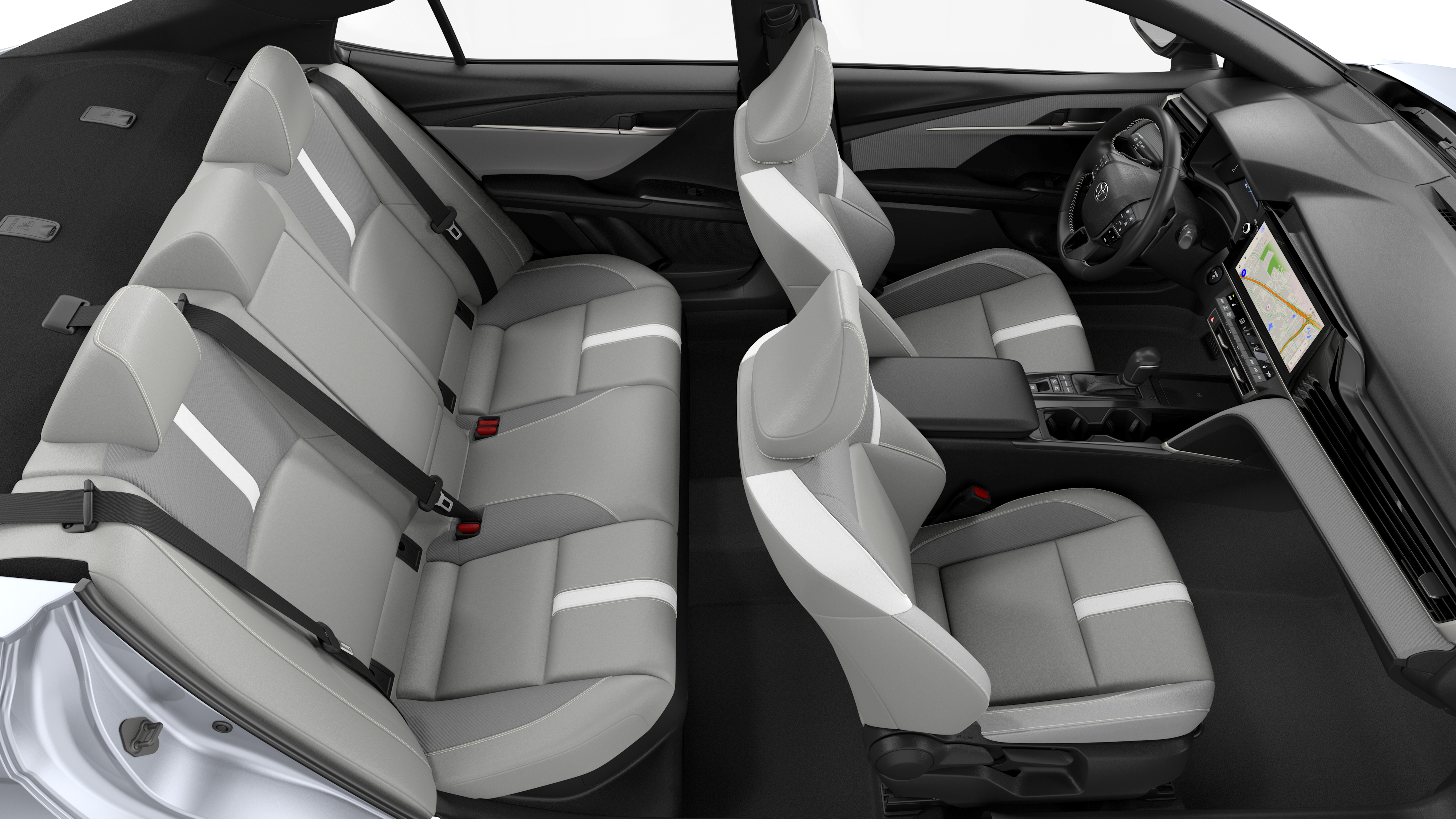 - Five USB ports: one USB-A media port and two USB-C charging ports up front, with one USB-A and one USB-C charging port in the rear