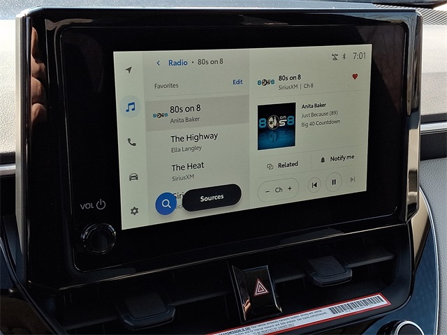 - 8-in. Toyota Audio Multimedia touchscreen with six speakers, wireless Apple CarPlay® & Android Auto™ compatibility, SiriusXM® 3-month trial subscription. See toyota.com/audio-multimedia for details.