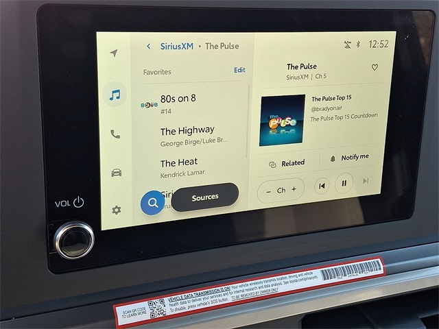 - 8-in. Toyota Audio Multimedia display with 6-speaker audio system, wireless Apple CarPlay® & Android Auto™ compatibility, SiriusXM® 3-month trial subscription. See toyota.com/connected-services for details.