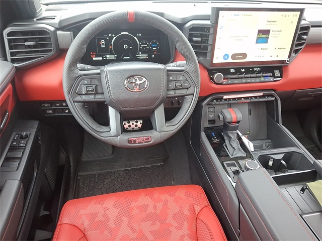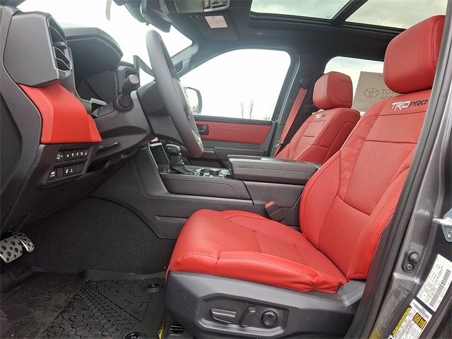 - TRD Pro SofTex®-trimmed seats with contrast stitching and technical-camo-pattern inserts; 8-way power-adjustable driver and front passenger seats with power-adjustable lumbar support
