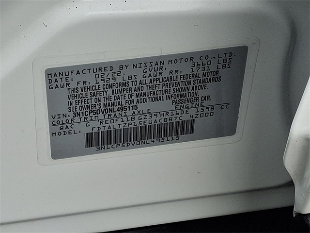 Aspen White Tricoat 2022 Nissan Kicks SR FWD CVT with Xtronic 1.6L 4-Cylinder DOHC 16V